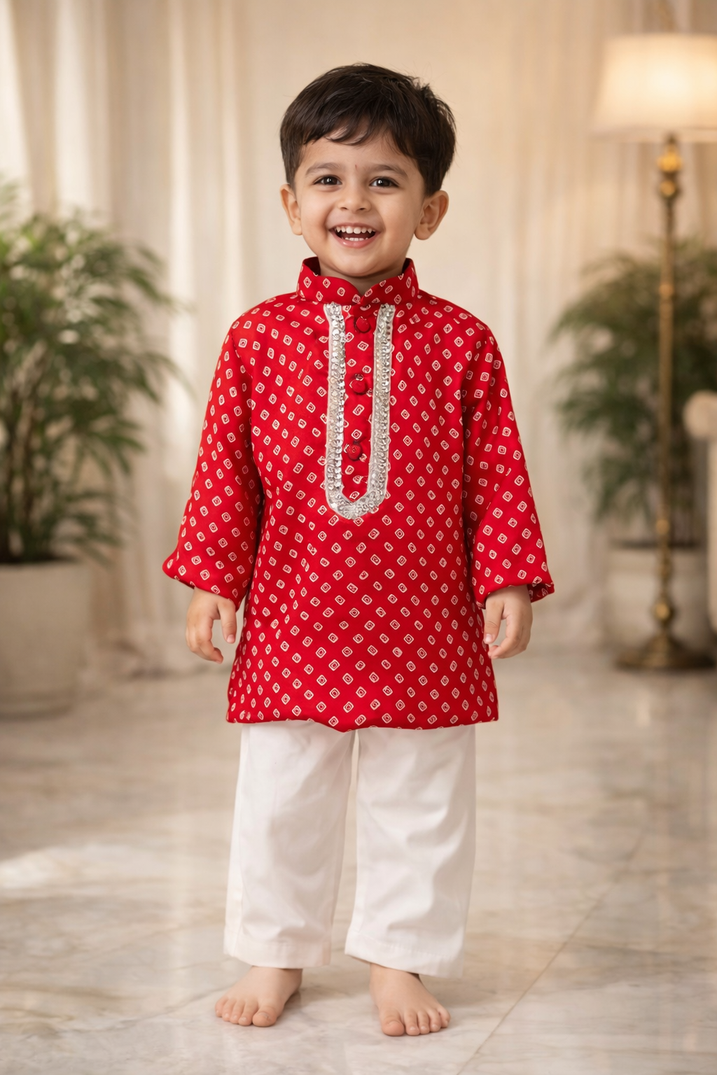 Add a touch of classic charm to your little one’s wardrobe with this beautifully crafted Bandhani Print Kurta Pajama Set.