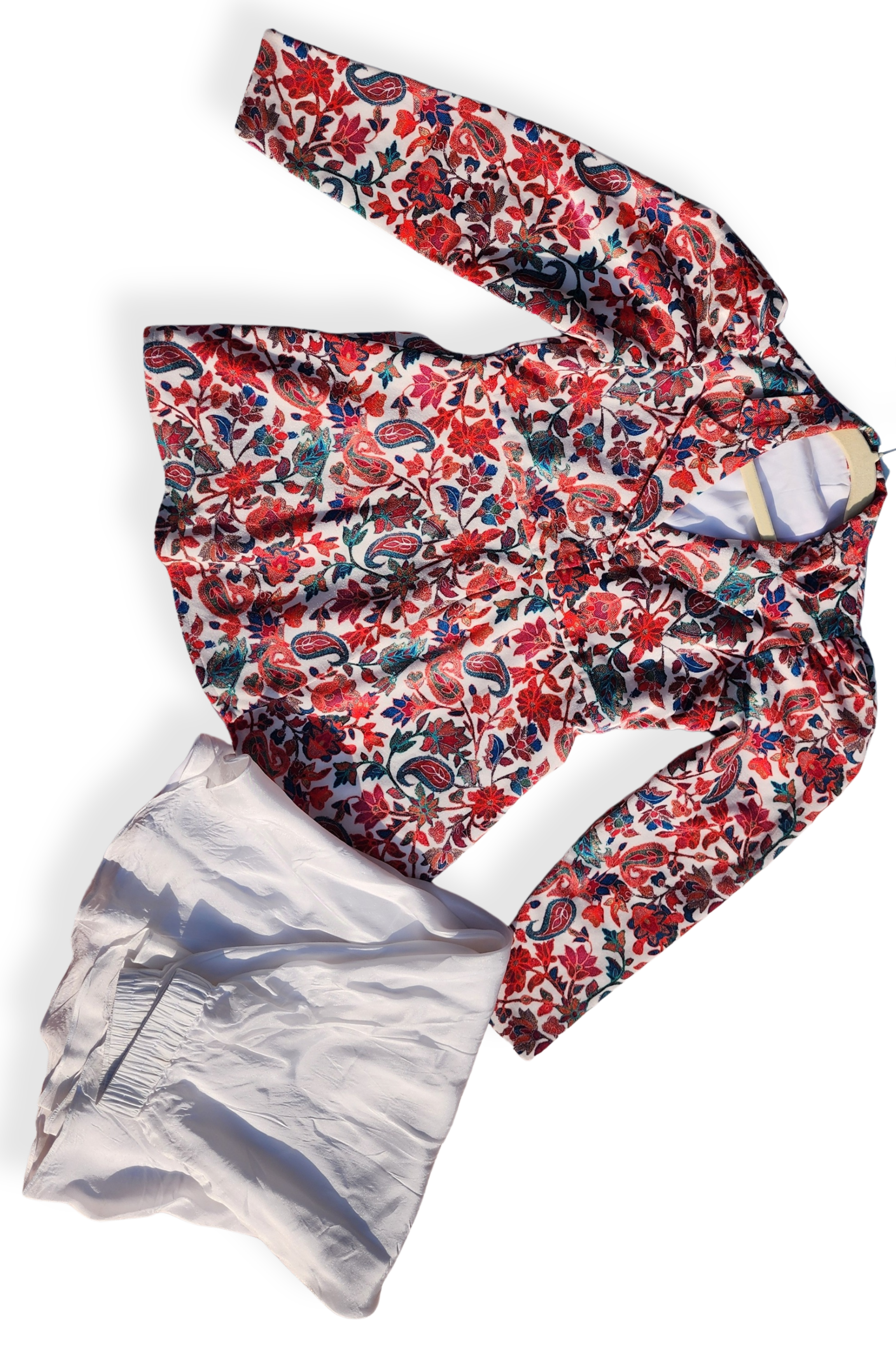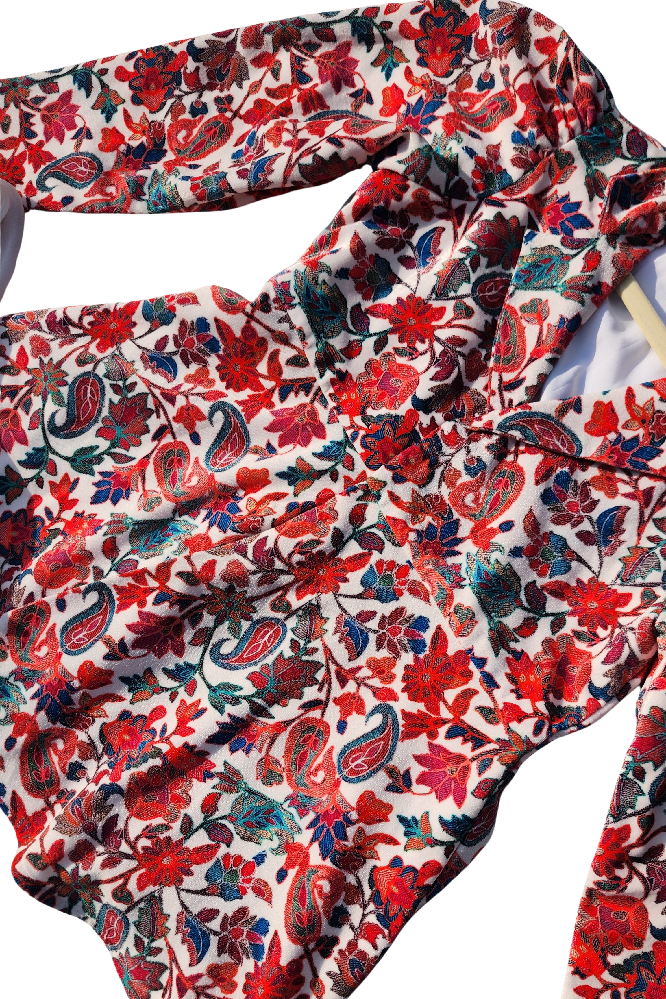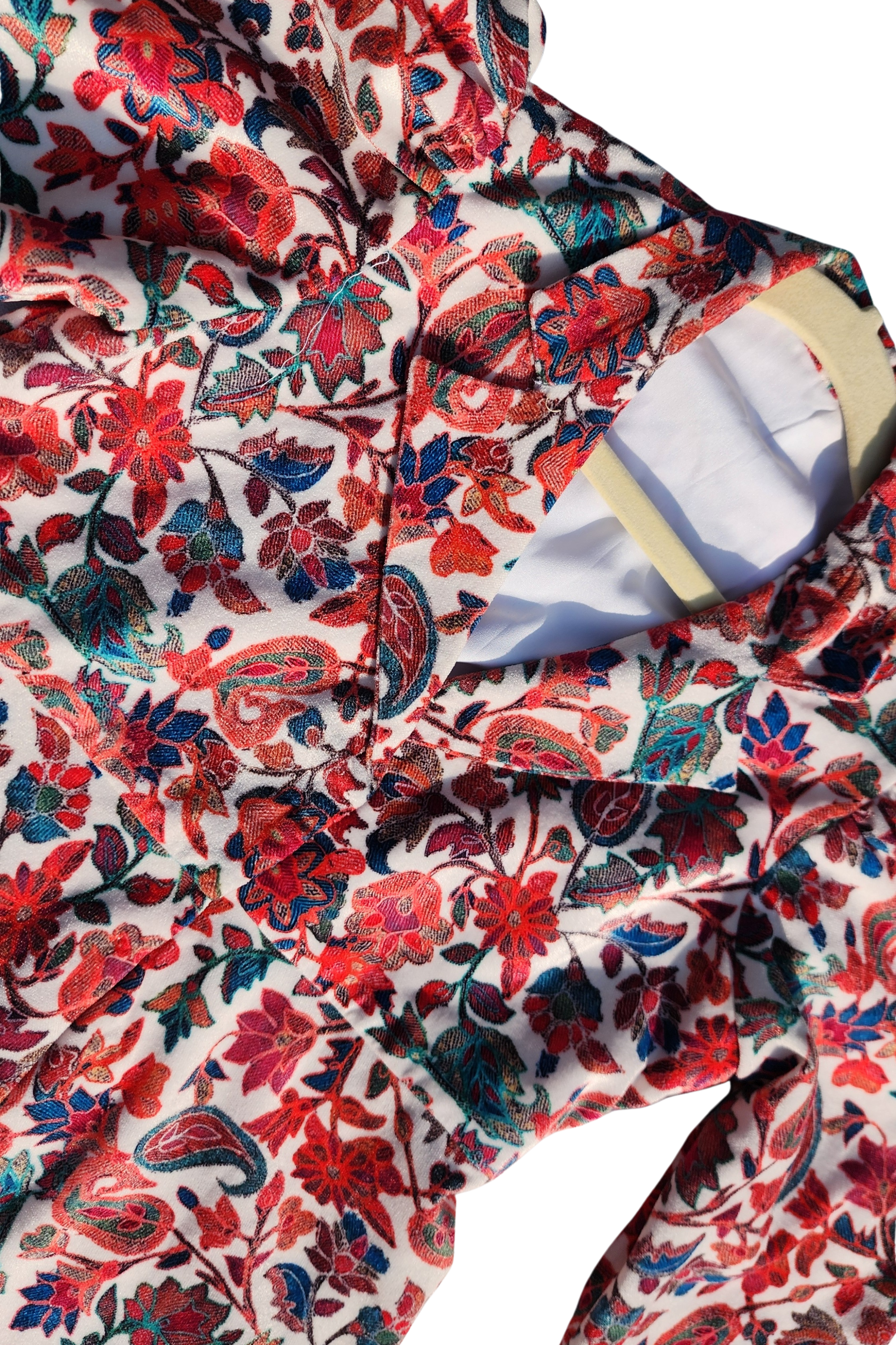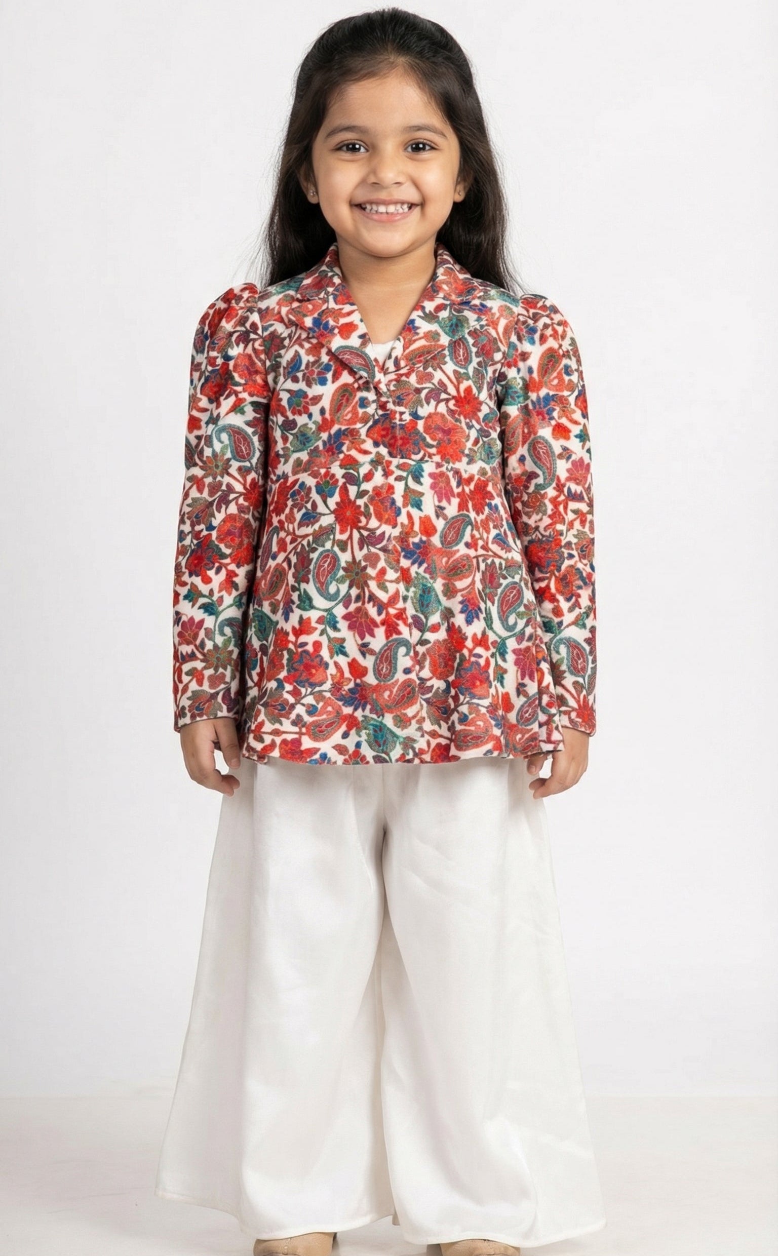 Let your little one shine at winter celebrations with this charming Ivory Blossom Velvet Blazer Set. The soft velvet blazer features a delightful all-over print that brings festive flair, while the flowing silk palazzo pants offer unrestricted movement for active play. Perfect for weddings, family gatherings, and special occasions, this two-piece set combines warmth with style. The structured blazer creates a polished appearance, and the lightweight palazzo keeps your child comfortable whether they're dancing, running, or enjoying the festivities. Easy to dress in and designed with both comfort and elegance in mind, it's an ideal choice for making winter's special moments memorable.