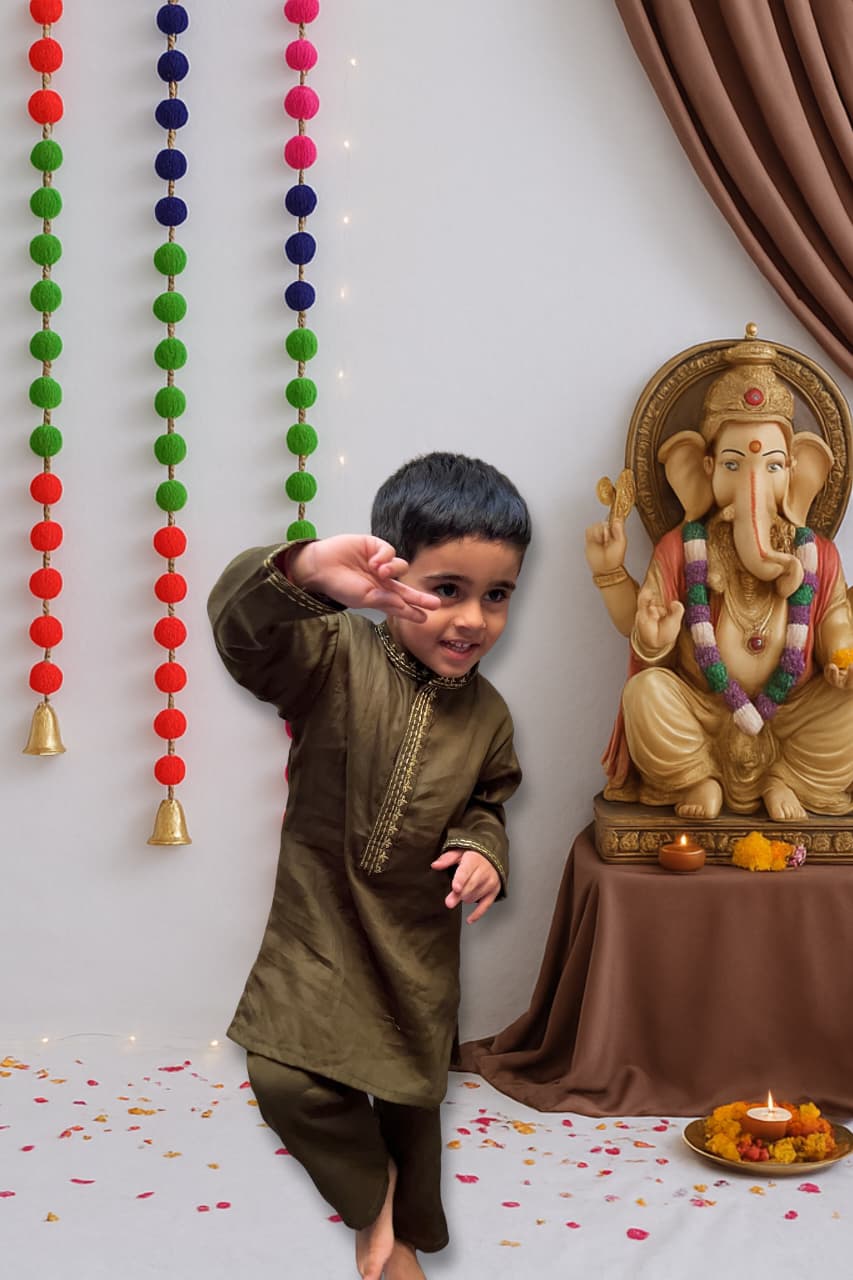 Bring festive elegance to your little one’s wardrobe with our Mehandi Embroidered Kurta Set. Made from 100% soft cotton, this outfit ensures all-day comfort while keeping your child effortlessly stylish. The kurta features delicate embroidery on the neckline and sleeves, adding a touch of traditional grace to the festive green color. Paired with matching bottoms, it’s a perfect choice for mehandi, family gatherings, or cultural celebrations