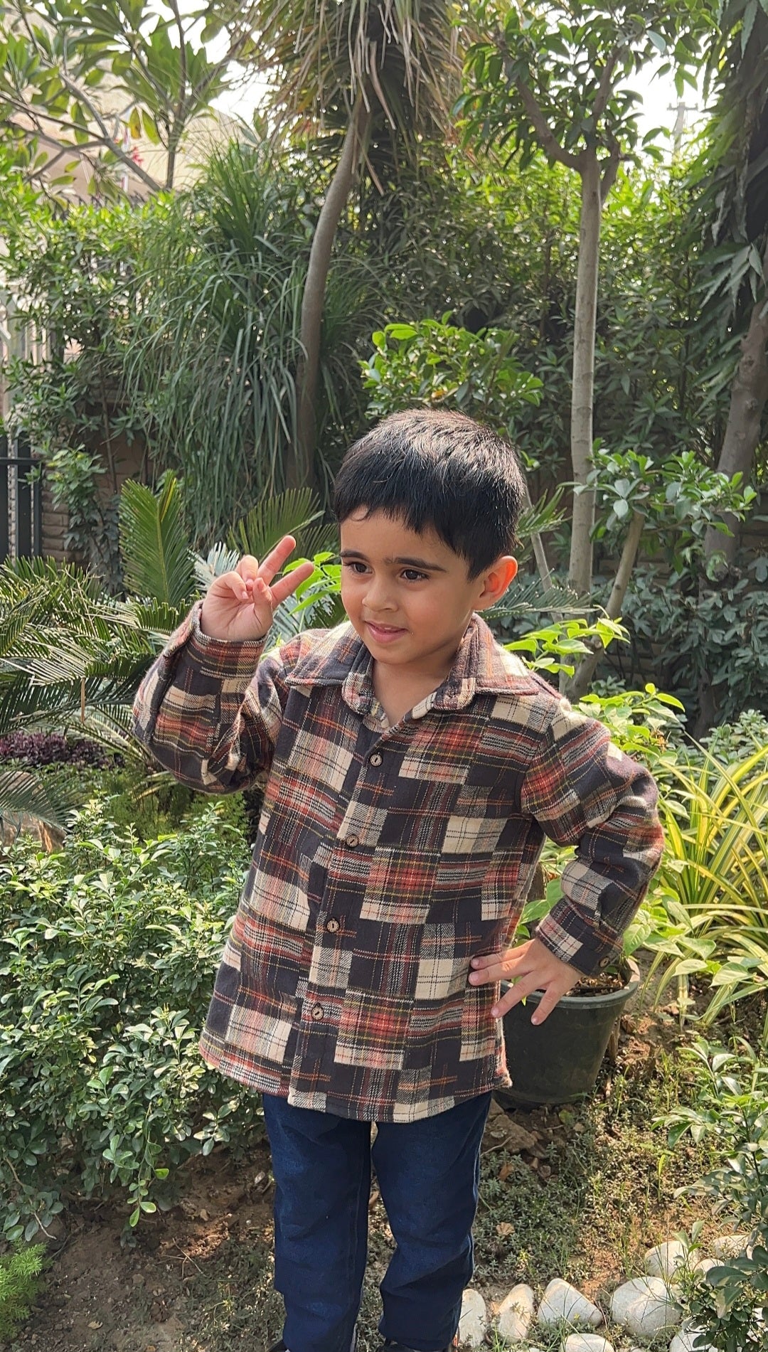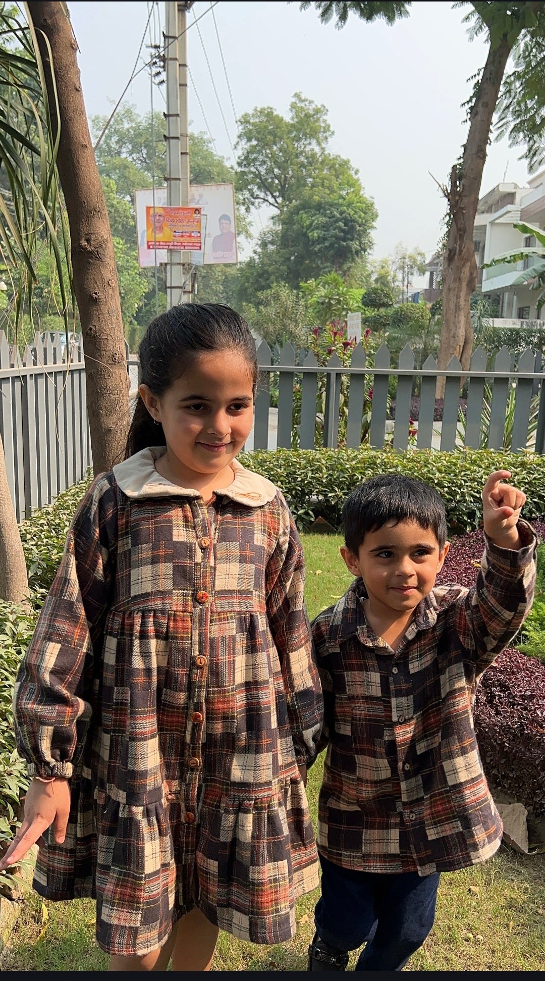Crafted from 100% premium cotton, this boys’ checkered shirt is designed to keep your little one warm and comfortable through the winter season. The soft, breathable fabric ensures ease of movement while providing just the right amount of warmth. Featuring a classic check pattern in rich earthy tones, this shirt adds a timeless touch to his everyday winter look. Perfect for casual outings or family get-togethers, it pairs effortlessly with denims or trousers for a smart, cozy style.