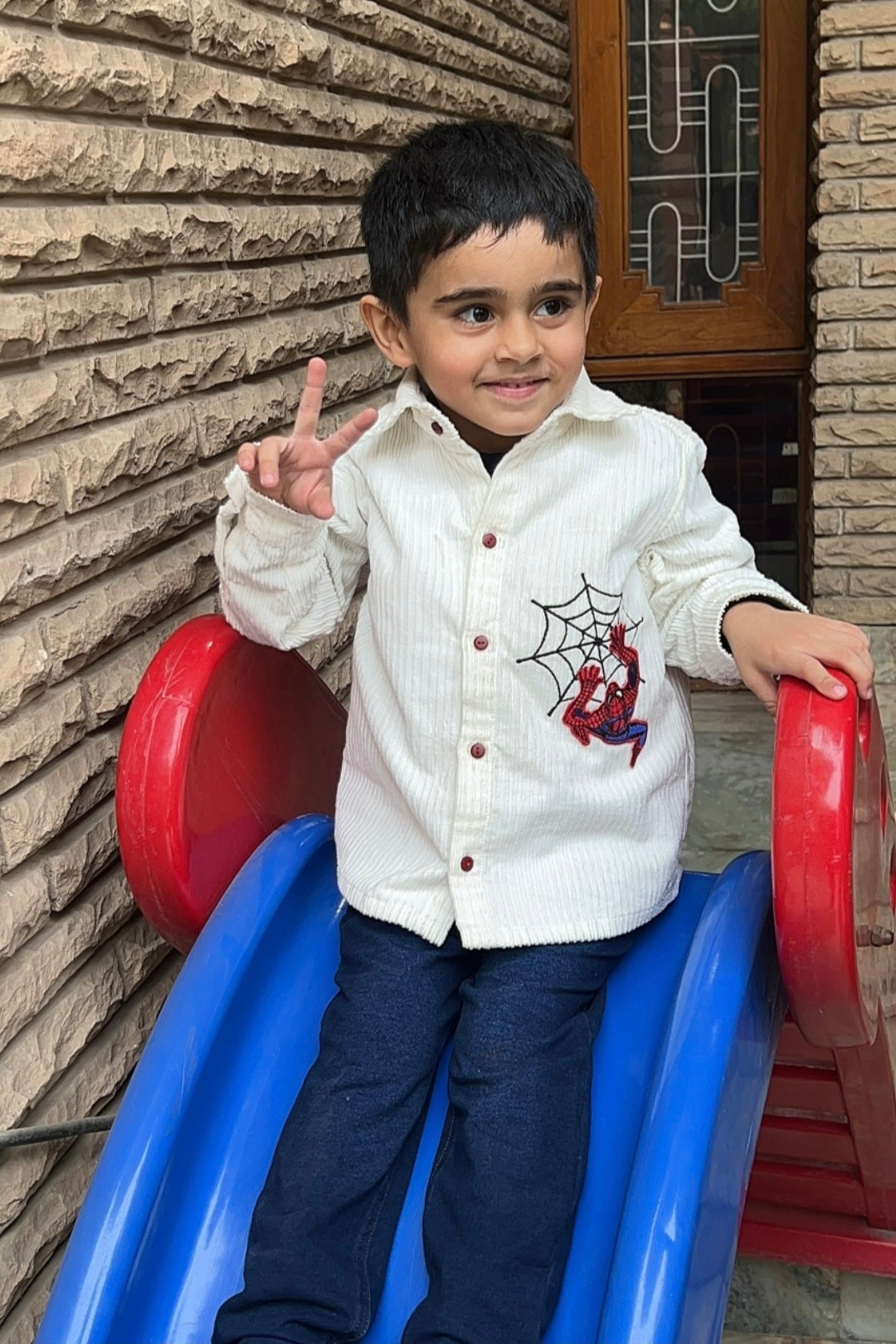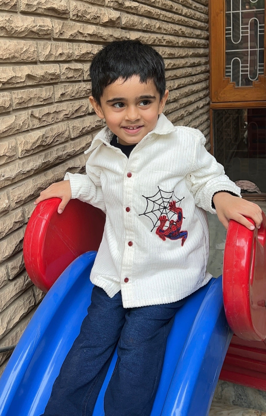 Keep your little hero cozy and stylish this winter with our White Corduroy Spider-Man Shirt. Crafted from 100% premium corduroy cotton, this shirt offers warmth, comfort, and a soft hand feel — perfect for chilly days. The highlight is the playful Spider-Man web and character embroidery, adding a fun twist to a classic design. Featuring button-down detailing and a relaxed fit, it’s an ideal pick for both everyday wear and casual outings.